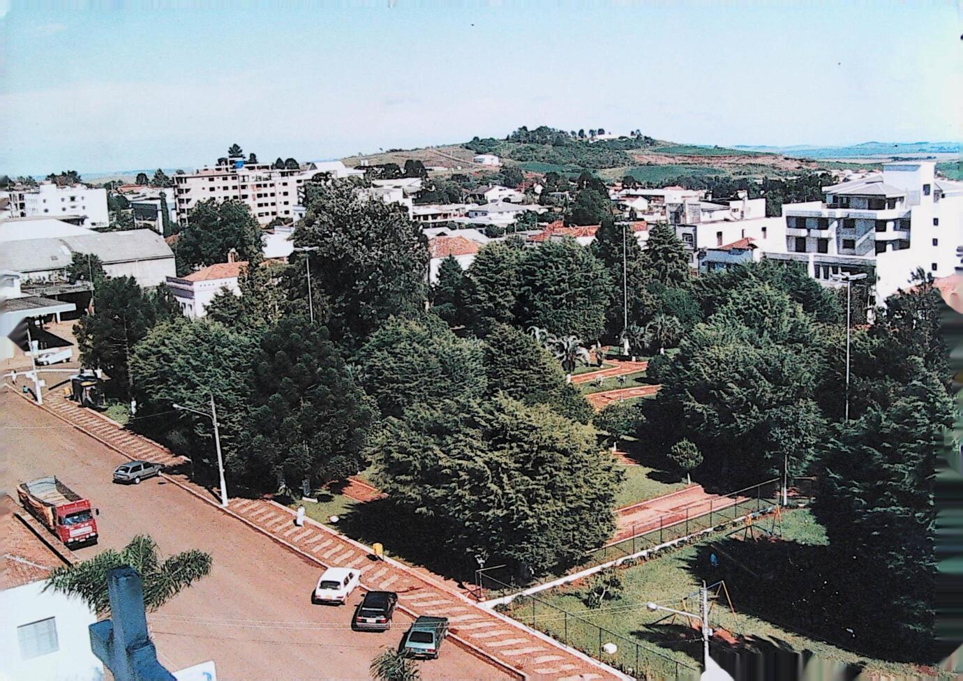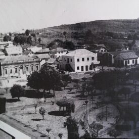 Registro fotográfico das primeiras décadas do século XX que documenta a Praça Lauro Müller, situada no município de Campos Novos. Da esquerda para a direita, identificam-se a Loja Palestina, de propriedade de Mustafá Assad; a Loja Thibes; o Clube Repentino; e, ao final, a esquina onde atualmente funciona o Banco Bradesco.